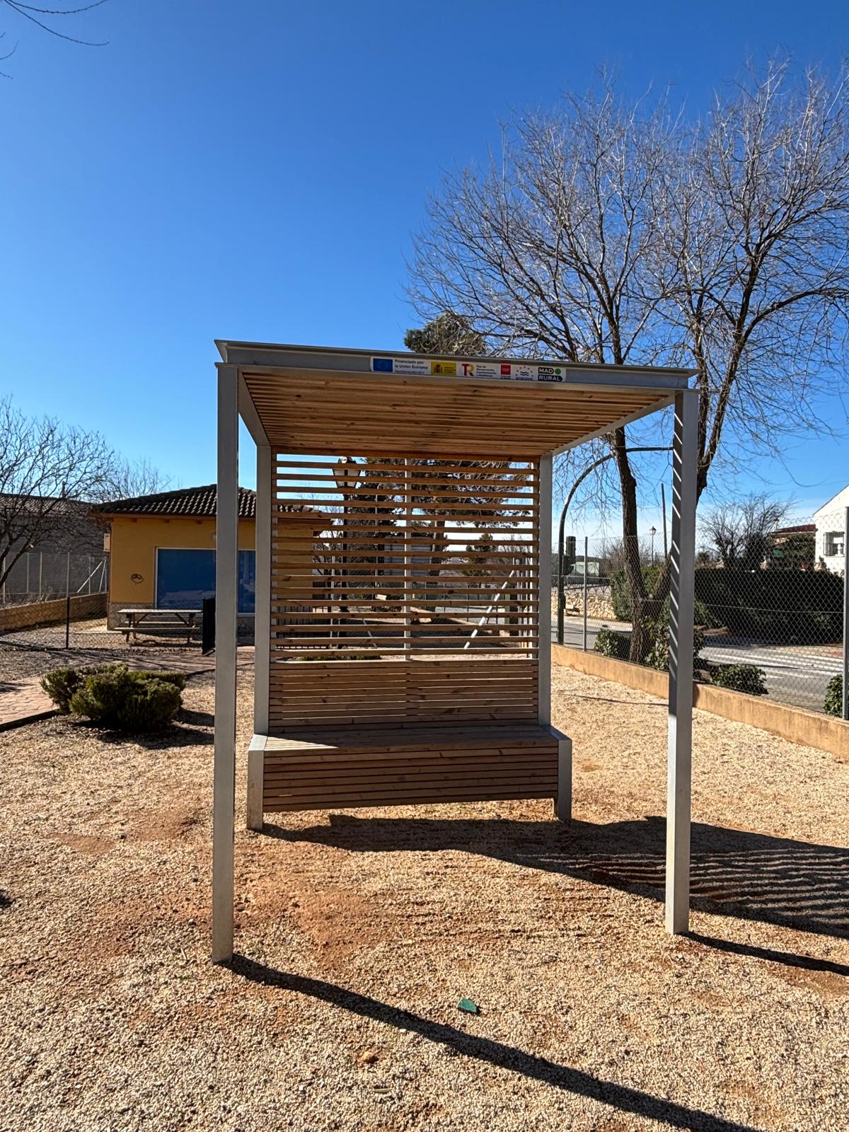 Instalación de infraestructuras que mejoren la sensación térmica (pérgolas) en la Comarca de las Vegas y la Alcarria de Madrid con el fin de optimizar la habitabilidad y confort de los espacios públicos ante olas de calor y radiación solar, poniendo a su vez en valor los recursos endógenos del territorio y el entorno rural.Diseño e instalación de pérgolas y toldos en zonas urbanas con afluencia turística, con diseño adaptado a cada entorno para el uso y disfrute de visitantes y población local. Se han llevado a cabo en las siguientes ubicaciones: