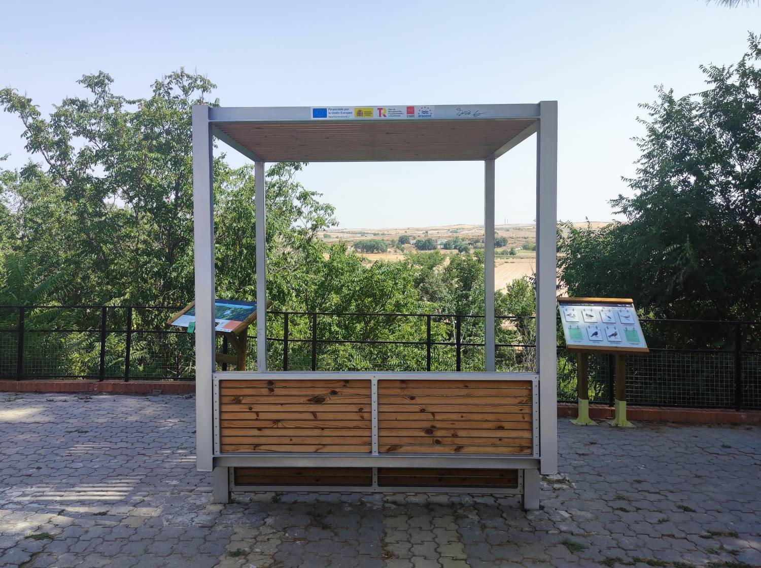 Instalación de infraestructuras que mejoren la sensación térmica (toldos, pérgolas y/o cubiertas vegetales) en la Comarca de las Vegas y la Alcarria de Madrid con el fin de optimizar la habitabilidad y confort de los espacios públicos ante olas de calor y radiación solar, poniendo a su vez en valor los recursos endógenos del territorio y el entorno rural.Diseño e instalación de pérgolas y toldos en zonas urbanas de alta afluencia turística, con soluciones adaptadas a cada entorno para mejorar el uso y disfrute tanto de visitantes como de la población local, actuaciones realizadas en Brea de Tajo (Mirador del Sur), Fuentidueña de Tajo (Mirador del Tajo), Olmeda de las Fuentes (junto al Auditorio Pedro Páez y en el Mirador de Olmeda de las Fuentes), Perales de Tajuña (Mirador de la Vía Verde del Tajuña) y Titulcia (Puente de Hierro del Río Jarama).