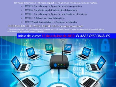 Durante el mes de [highlight] octubre [/highlight] daremos comienzo a la programación de Certificados de Profesionalidad de los centros de formación de ARACOVE en los municipios de Aranjuezy Villarejo de Salvanés. Para ello la primera selección de alumnos se llevará a cabo el día 12 de septiembre de 10:00 a 12:00h en la Finca la...